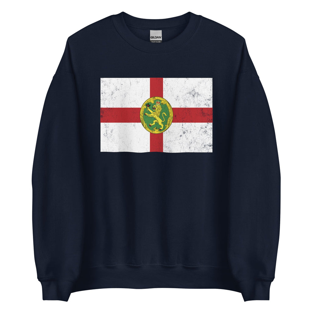 Fejr din arv med vores Distressed Alderney Flag Sweatshirt. Vis din stolthed, støt dit land & bær dine farver med passion. Køb nu!