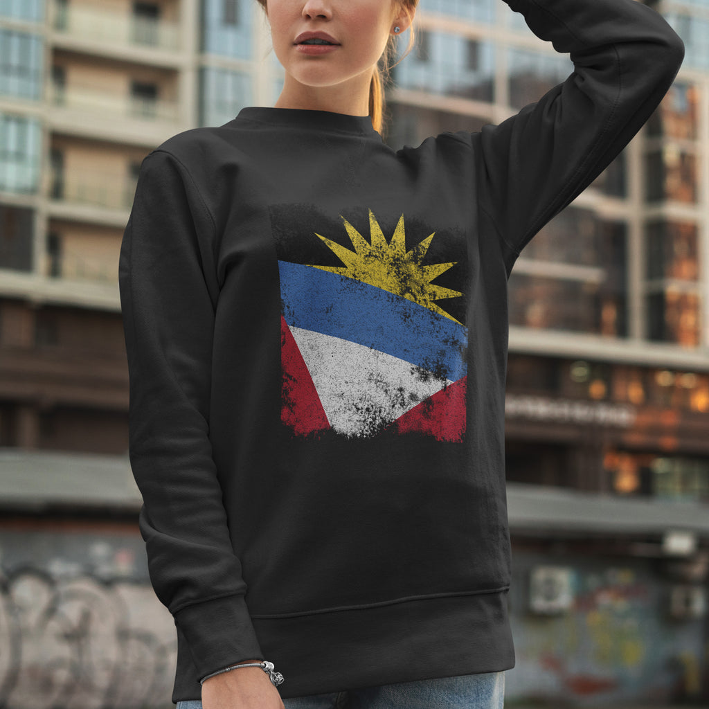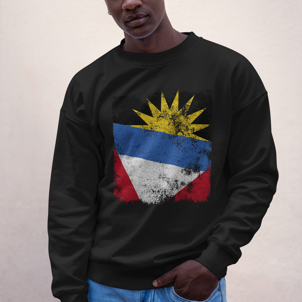 Fejr din arv med vores Distressed Antigua and Barbuda Flag Sweatshirt. Vis din stolthed, støt dit land & bær dine farver med passion. Køb nu!