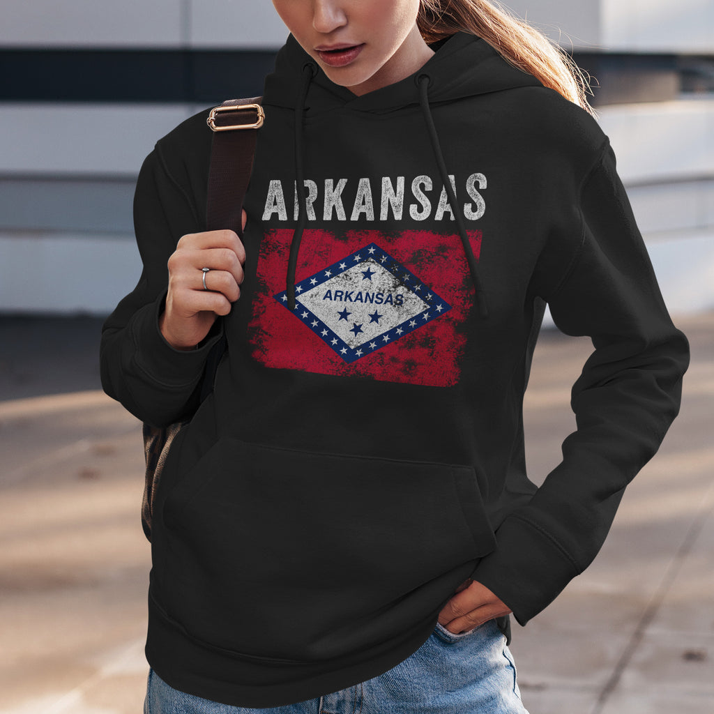 Celebrate your heritage with our Distressed Arkansas State Flag Hoodie. Vis din stolthed, støt USA og bær dine farver med passion. Buy now!