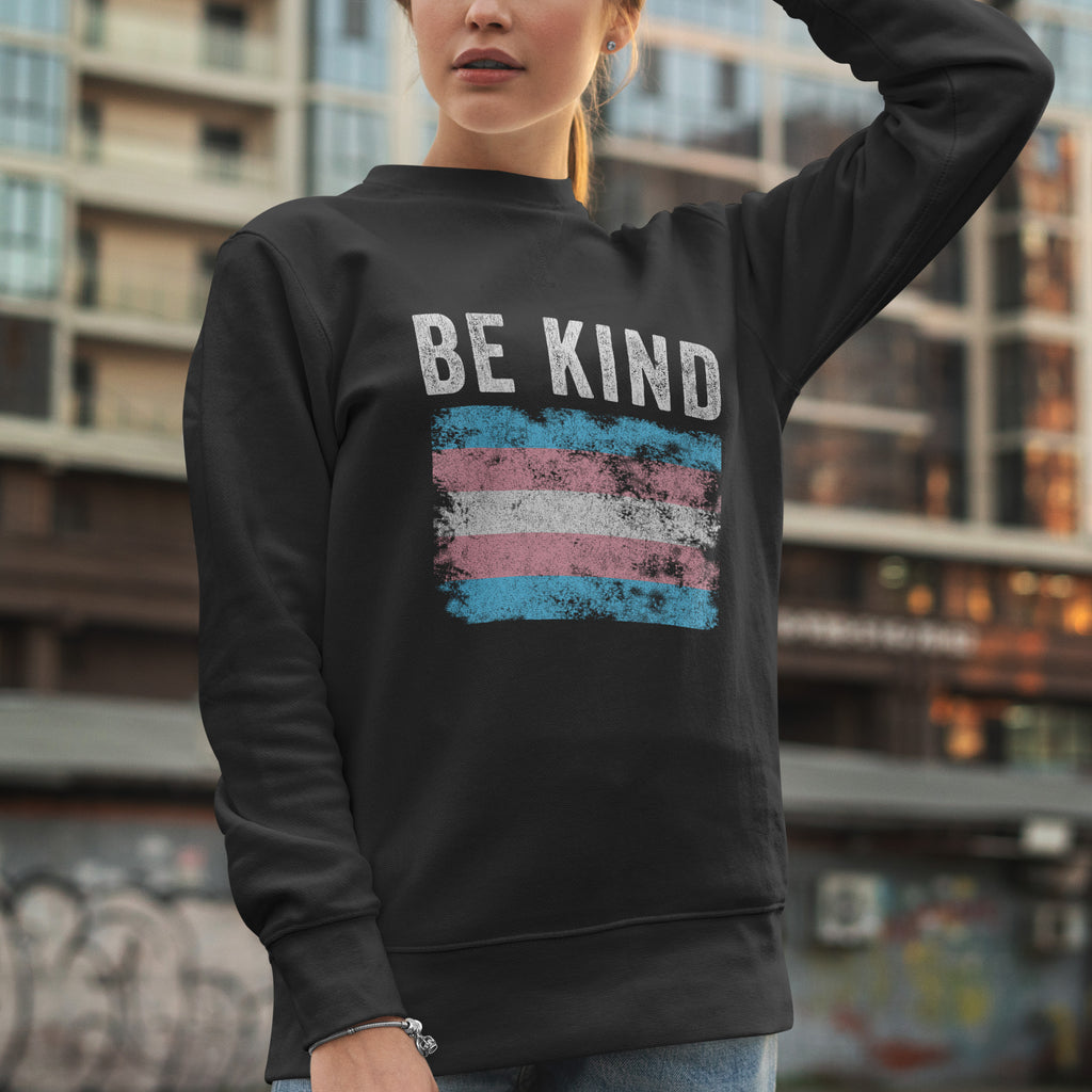Slip din Transkønnede stolthed løs med vores Slidte Transkønnede Flag Sweatshirt!