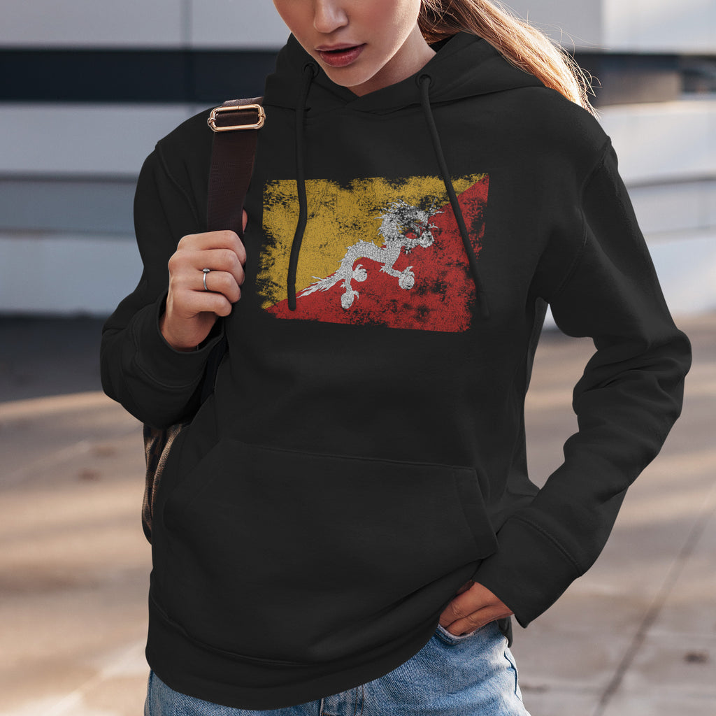 Fejr din arv med vores Distressed Bhutan Flag Hoodie. Vis din stolthed, støt dit land & bær dine farver med passion. Køb nu!