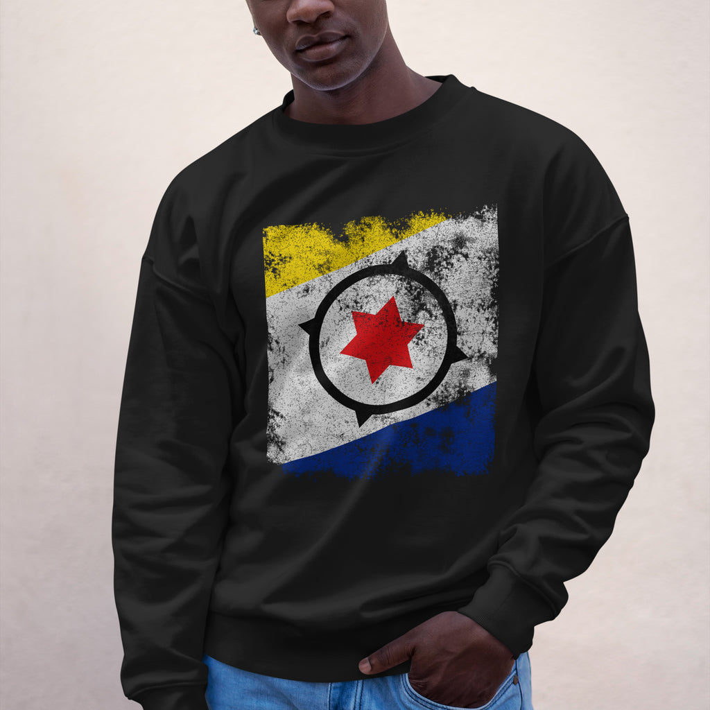Fejr din arv med vores Distressed Bonaire Flag Sweatshirt. Vis din stolthed, støt dit land og bær dine farver med passion. Køb nu!