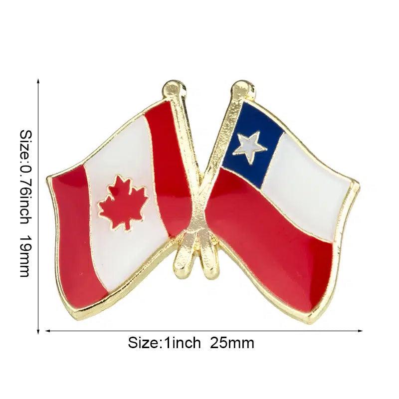 Fejr dit venskab med vores Canada Chile Flag Lapel Pin. Vis din stolthed, støt dit land & bær din emalje-pin med passion. Køb nu!