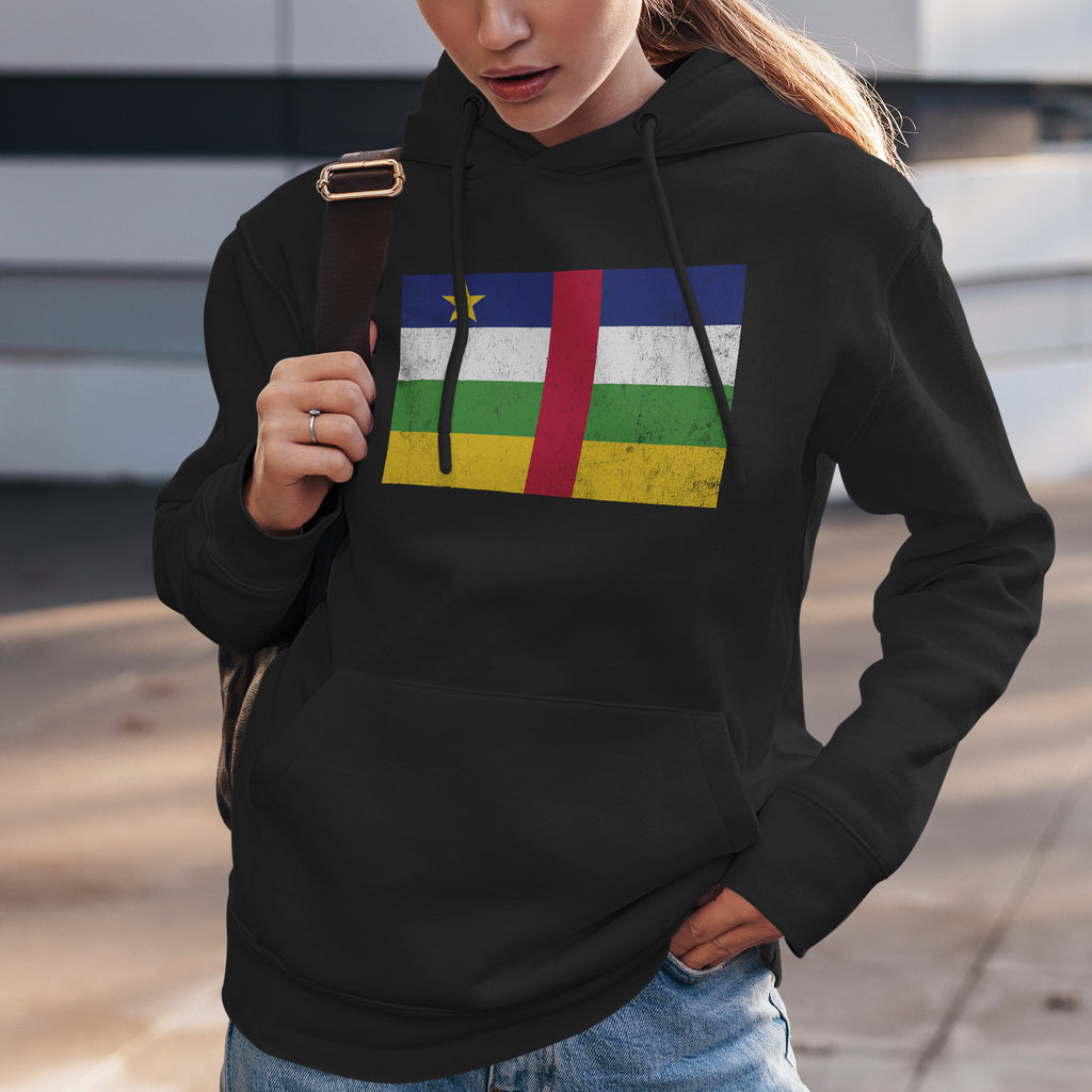 Fejr din arv med vores Slidte Centralafrikanske Republik Flag Hoodie. Vis din stolthed, støt dit land & bær dine farver med passion. Køb nu!