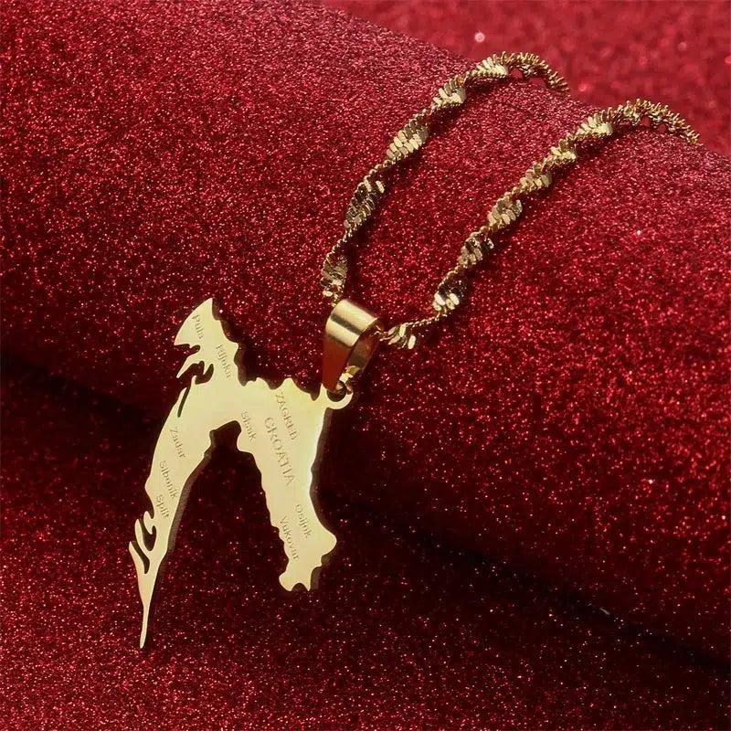 Elevate dit arv med vores Kroatien Kort Halskæde. Vis din stolthed, støt dit land & bær dit vedhæng med passion. Køb nu!