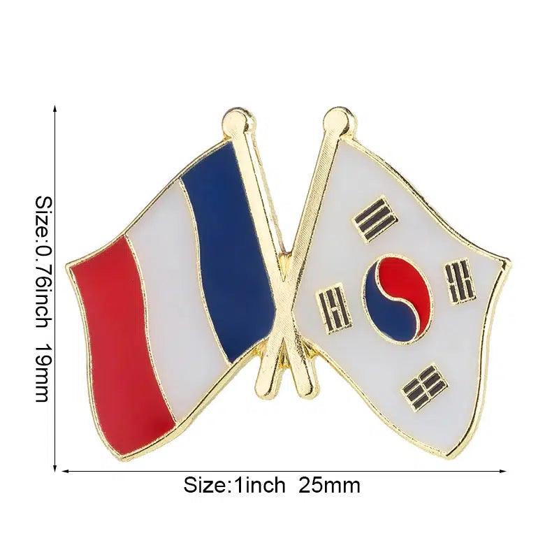 Fejr dit venskab med vores Frankrig Sydkorea Flag Reversnål. Vis din stolthed, støt dit land & bær din emaljenål med passion. Køb nu!