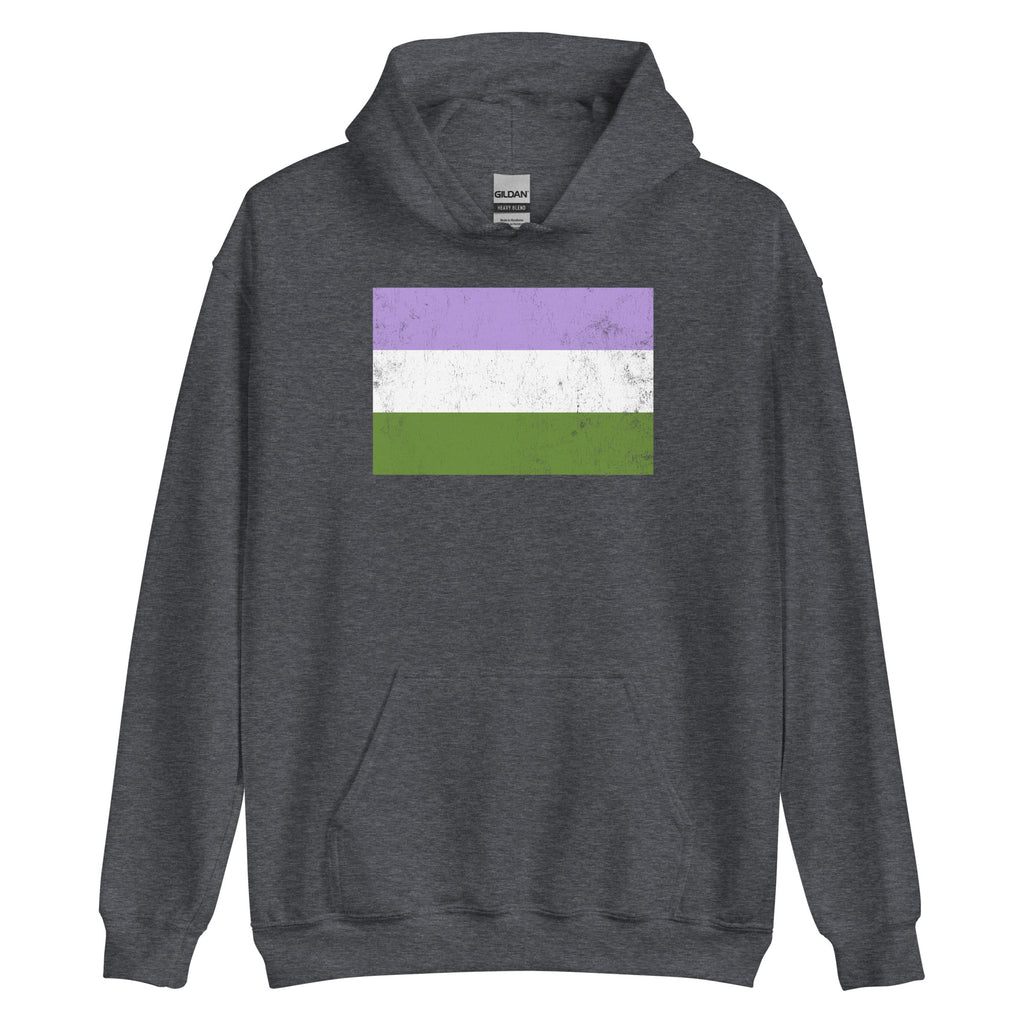 Slip din Genderqueer-stolthed løs med vores Distressed Pride Flag Hoodie! Vis støtte til LGBT+-fællesskabet og kampen for lighed og accept. Køb nu!