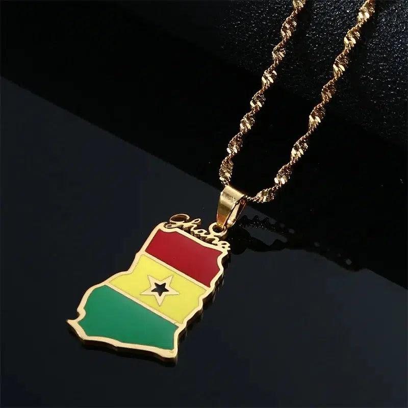 Forhøj din arv med vores Ghana Flag Map Halskæde. Vis din stolthed, støt dit land & bær dit vedhæng med passion. Køb nu!