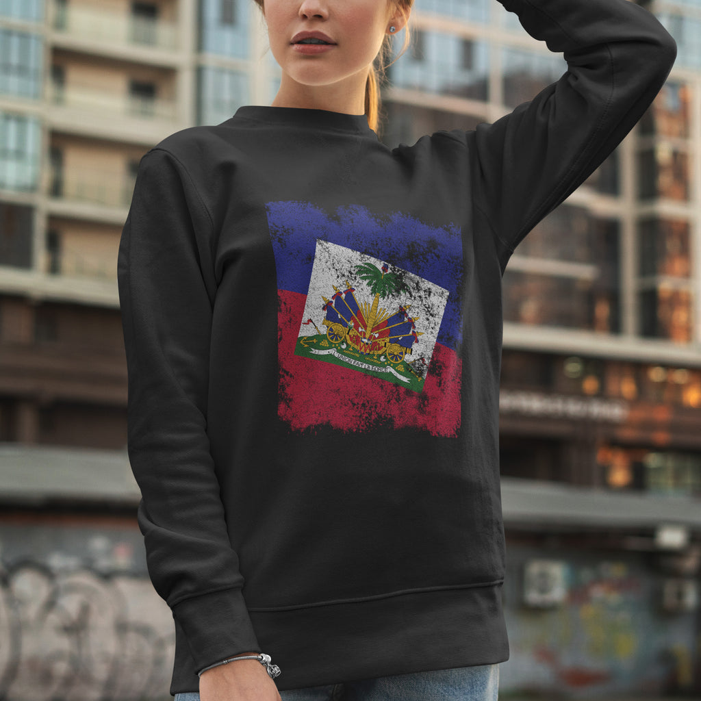Fejr din arv med vores Distressed Haiti Flag Sweatshirt. Vis din stolthed, støt dit land og bær dine farver med passion. Køb nu!