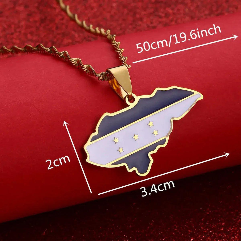 Forhøj din arv med vores Honduras Flag Map Halskæde. Vis din stolthed, støt dit land & bær dit vedhæng med passion. Køb nu!