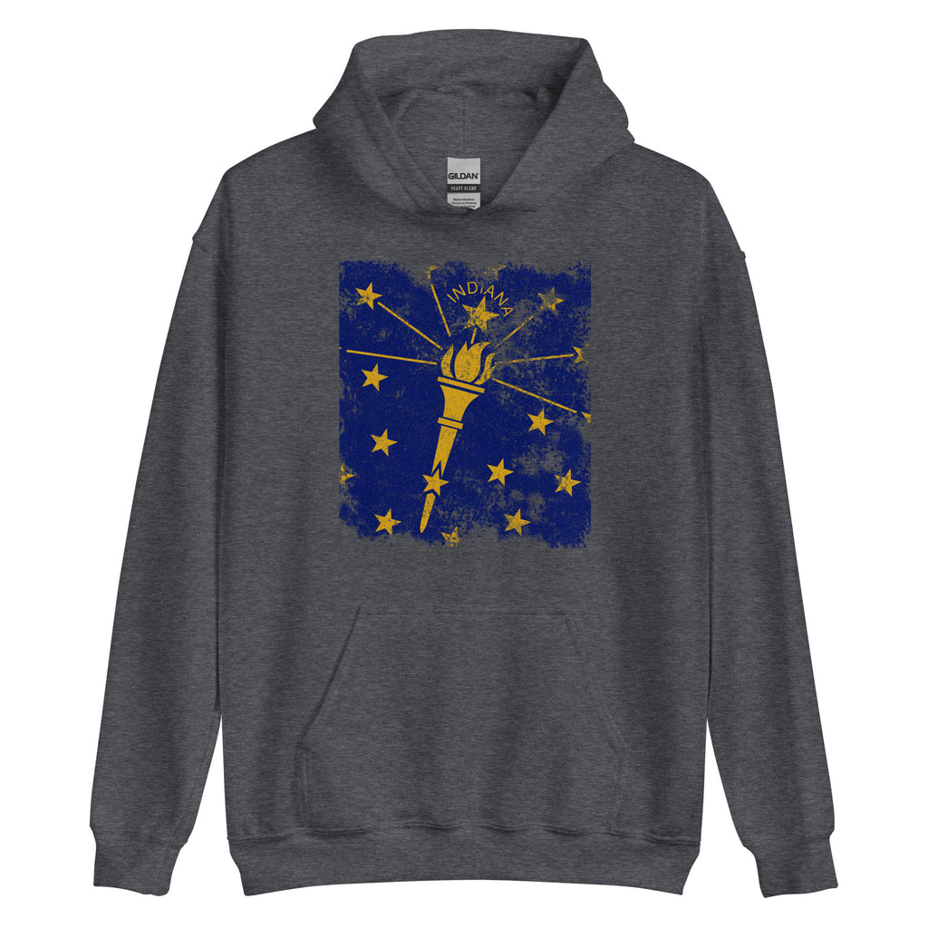 Fejr din arv med vores Distressed Indiana State Flag Hoodie. Vis din stolthed, støt USA og bær dine farver med passion. Køb nu!
