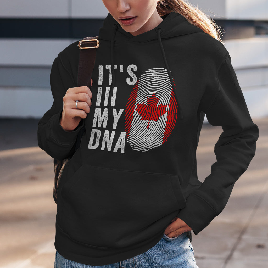 Fejr din arv med vores It's In My DNA Canada Flag Hoodie. Vis din stolthed, støt dit land & bær dine farver med passion. Køb nu!