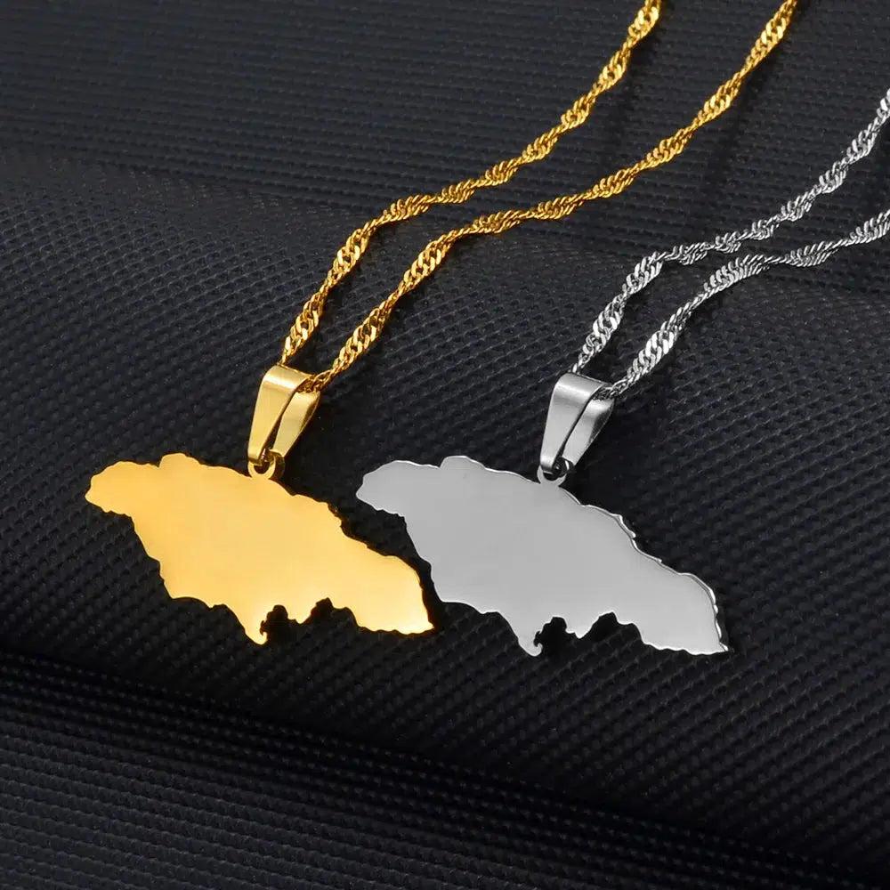 Forhøj din arv med vores Jamaica Map Necklace. Vis din stolthed, støt dit land & bær dit vedhæng med passion. Køb nu!