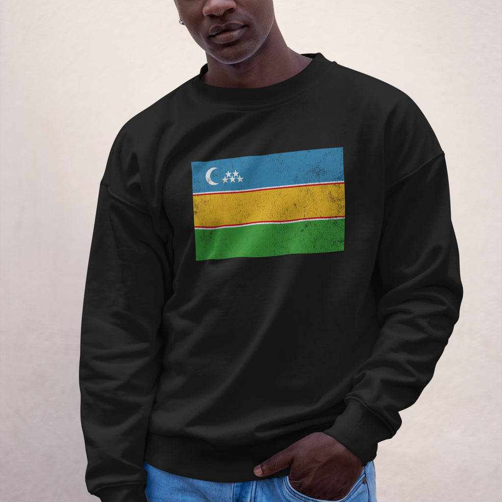 Fejr din arv med vores slidte Karakalpakstan-flag sweatshirt. Vis din stolthed, støt dit land & bær dine farver med passion. Køb nu!