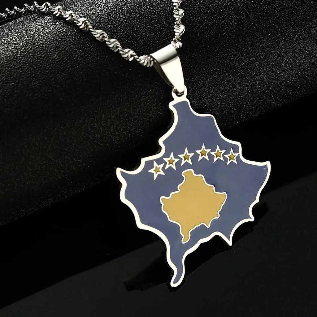 Elevate dit arv med vores Kosovo Flag Map Halskæde. Vis din stolthed, støt dit land & bær dit vedhæng med passion. Køb nu!