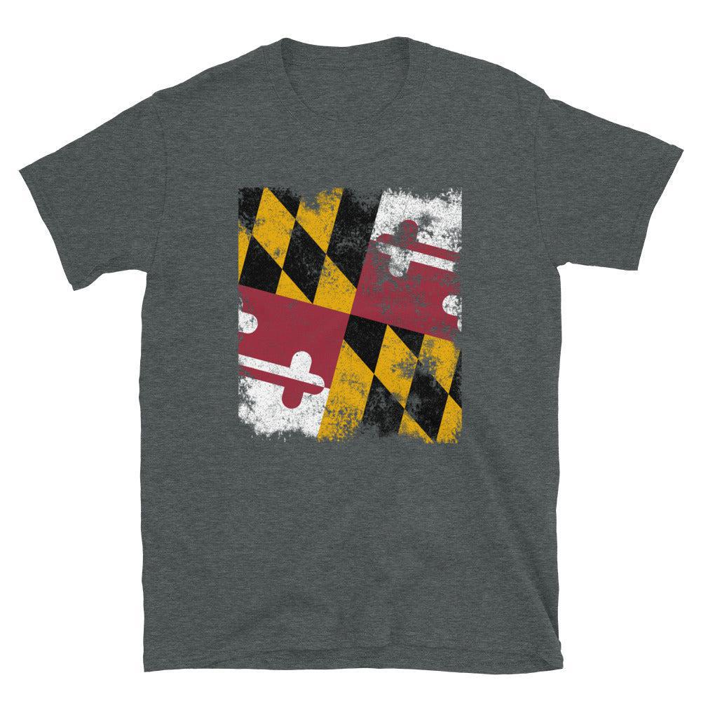 Fejr din arv med vores Distressed Maryland State Flag Shirt. Vis din stolthed, støt USA og bær dine farver med passion. Køb nu!