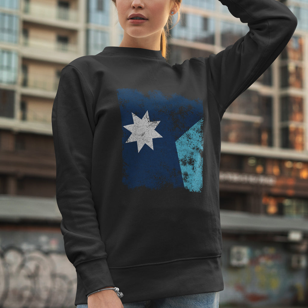 Fejr din arv med vores Slidte Minnesota State Flag Sweatshirt. Vis din stolthed, støt dit land og bær dine farver med passion. Køb nu!