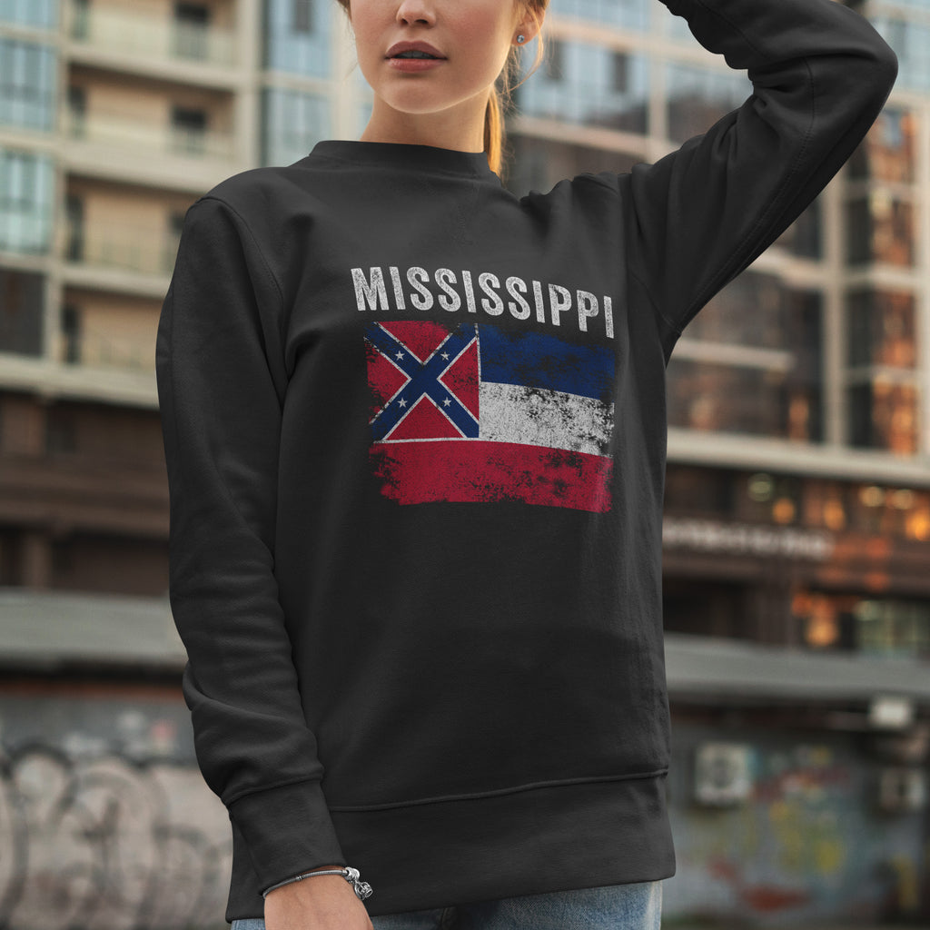 Fejr din arv med vores slidte Mississippi State Flag Sweatshirt. Vis din stolthed, støt dit land & bær dine farver med passion. Køb nu!