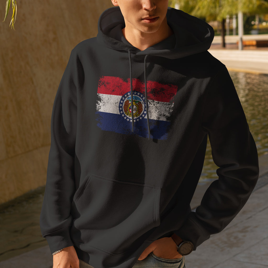 Celebrate your heritage with our Distressed Missouri State Flag Hoodie. Show your pride, support the United States & wear your colors with passion. Køb nu!