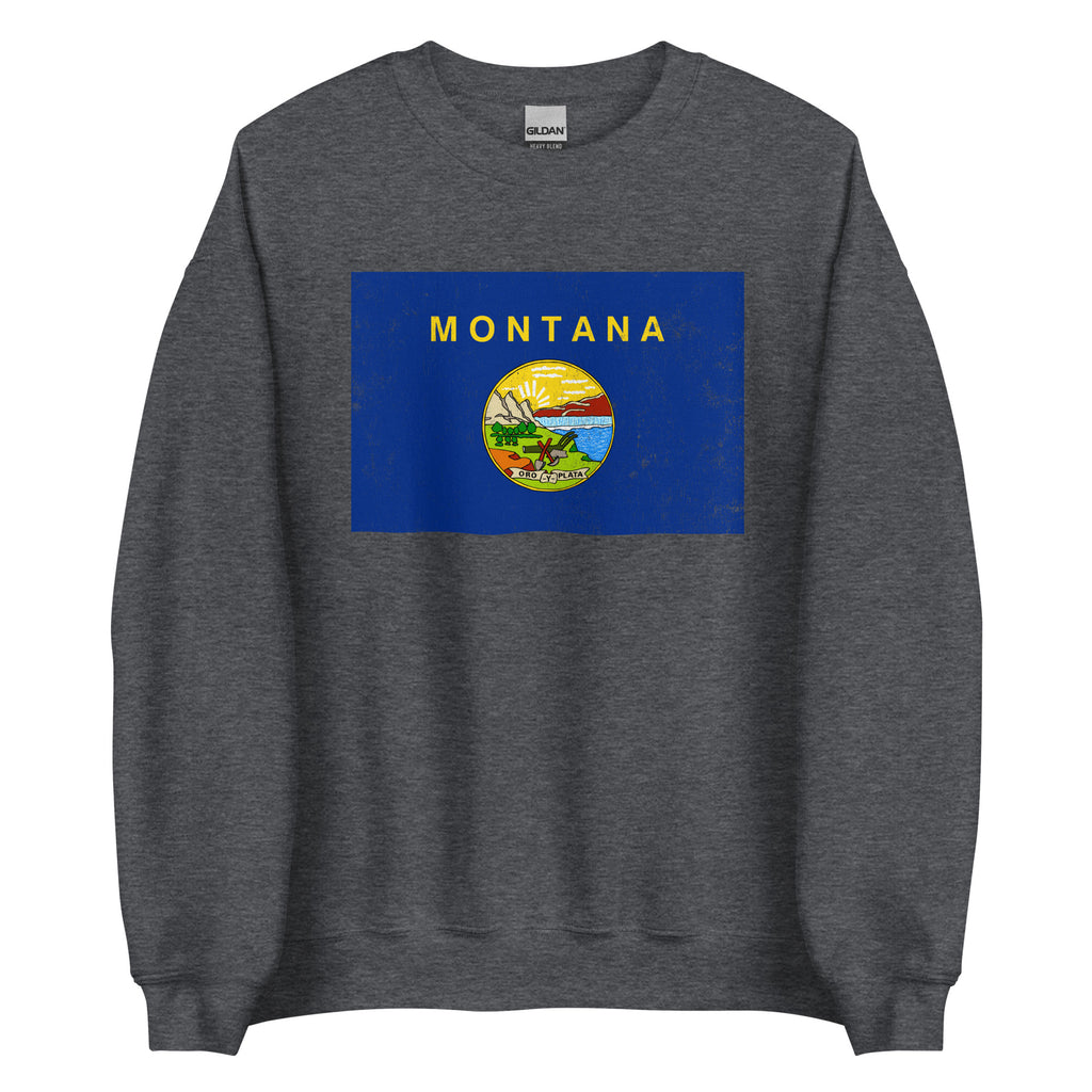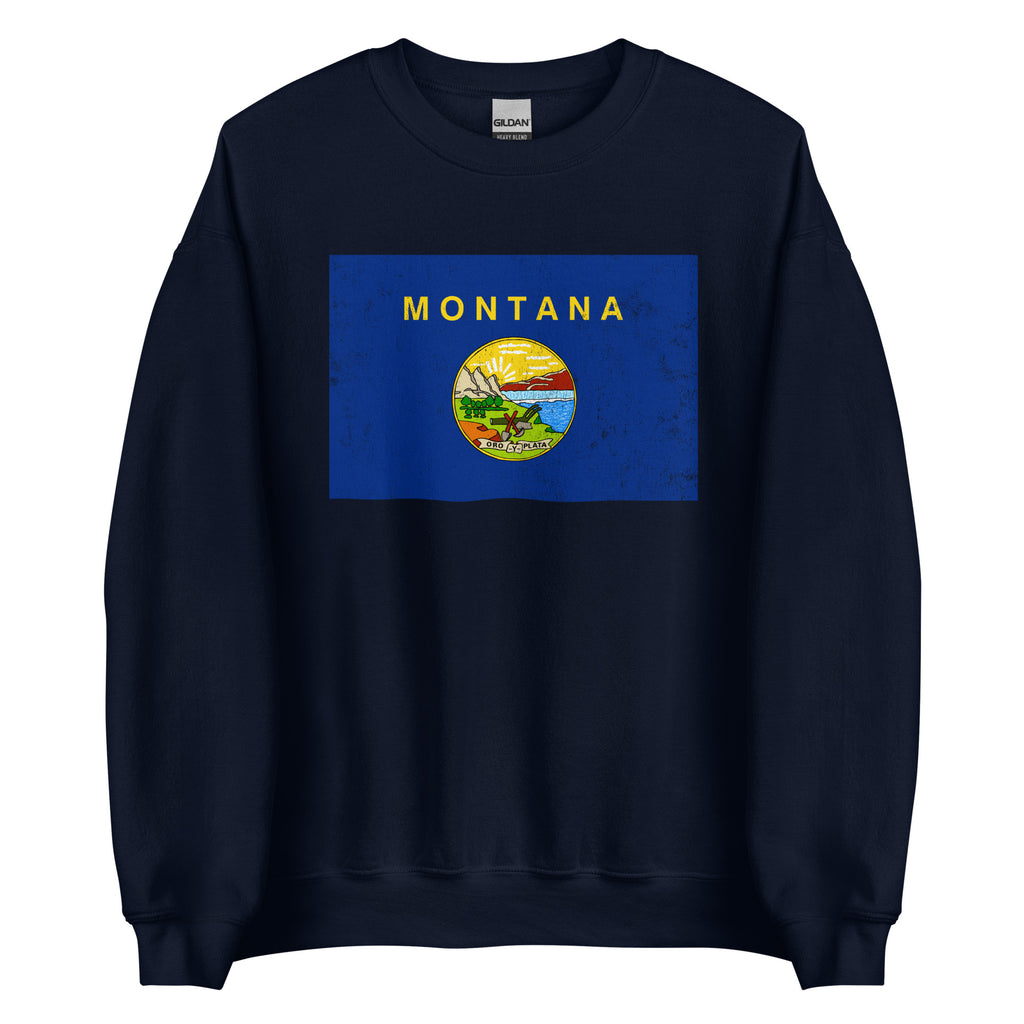 Fejr din arv med vores Distressed Montana State Flag Sweatshirt. Vis din stolthed, støt dit land og bær dine farver med passion. Køb nu!
