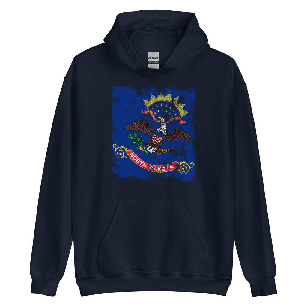 Fejr din arv med vores Distressed North Dakota State Flag Hoodie. Vis din stolthed, støt USA og bær dine farver med passion. Køb nu!