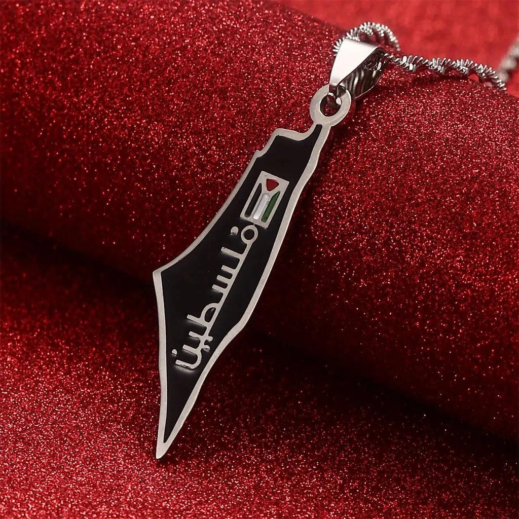Fejr din arv med vores Palestine Flag Map Necklace. Vis din stolthed, støt dit land & bær dit vedhæng med passion. Køb nu!