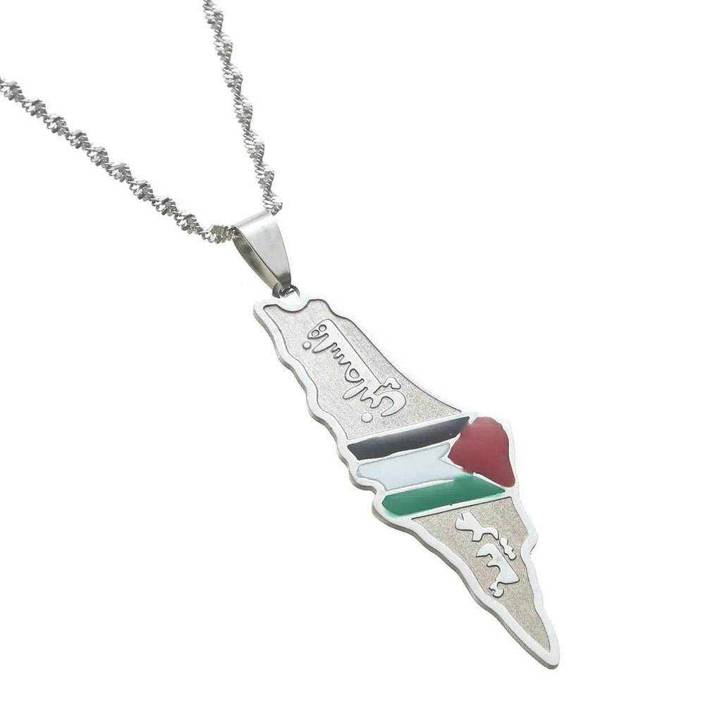 Fejr din arv med vores Palestine Flag Map Necklace. Vis din stolthed, støt dit land & bær dit vedhæng med passion. Køb nu!