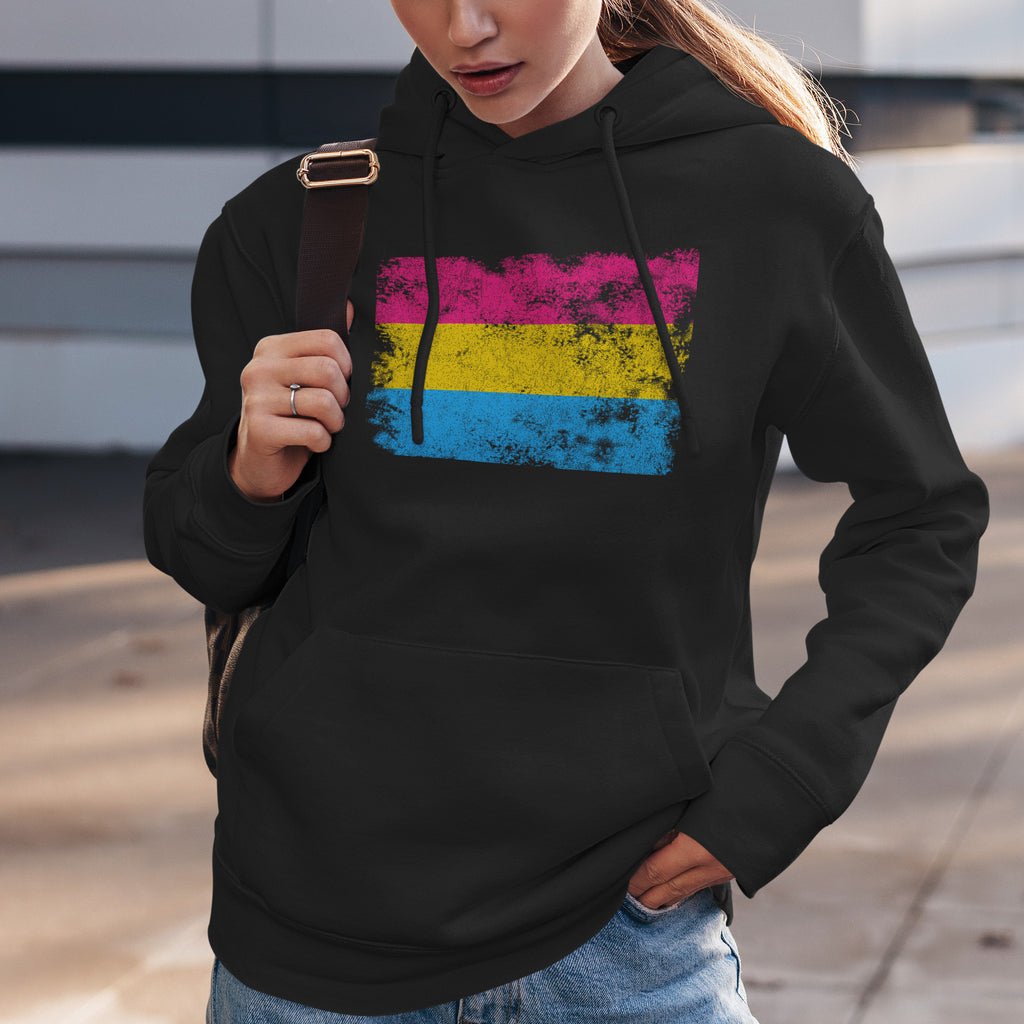Slip din panseksuelle stolthed løs med vores Distressed Pride Flag Hoodie! Vis støtte til LGBT+-fællesskabet og kampen for lighed og accept. Køb nu!