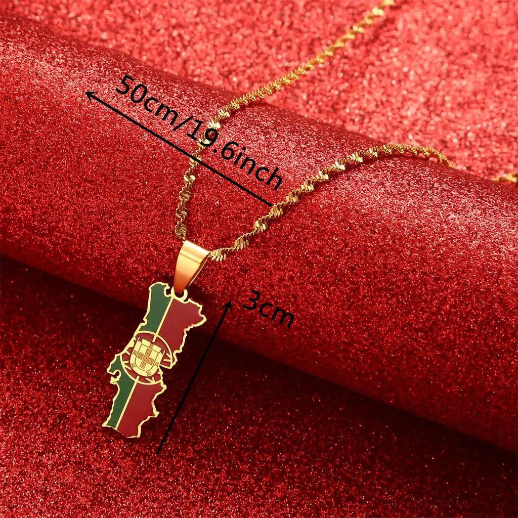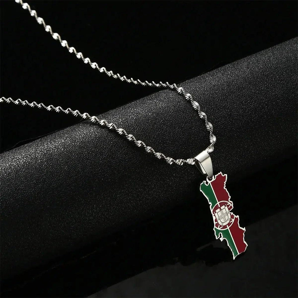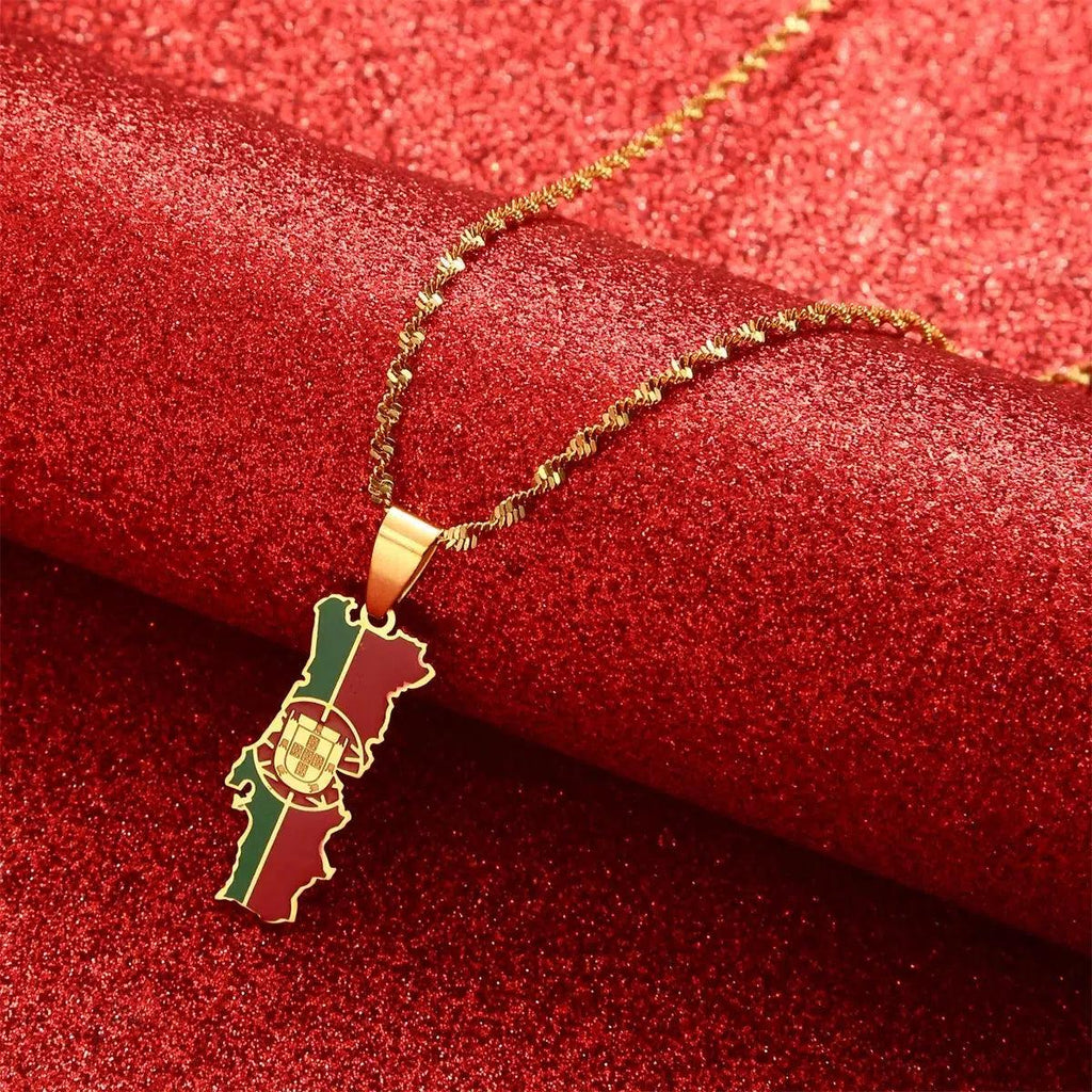 Fejr din arv med vores Portugal Flag Map Halskæde. Vis din stolthed, støt dit land & bær dit vedhæng med passion. Køb nu!