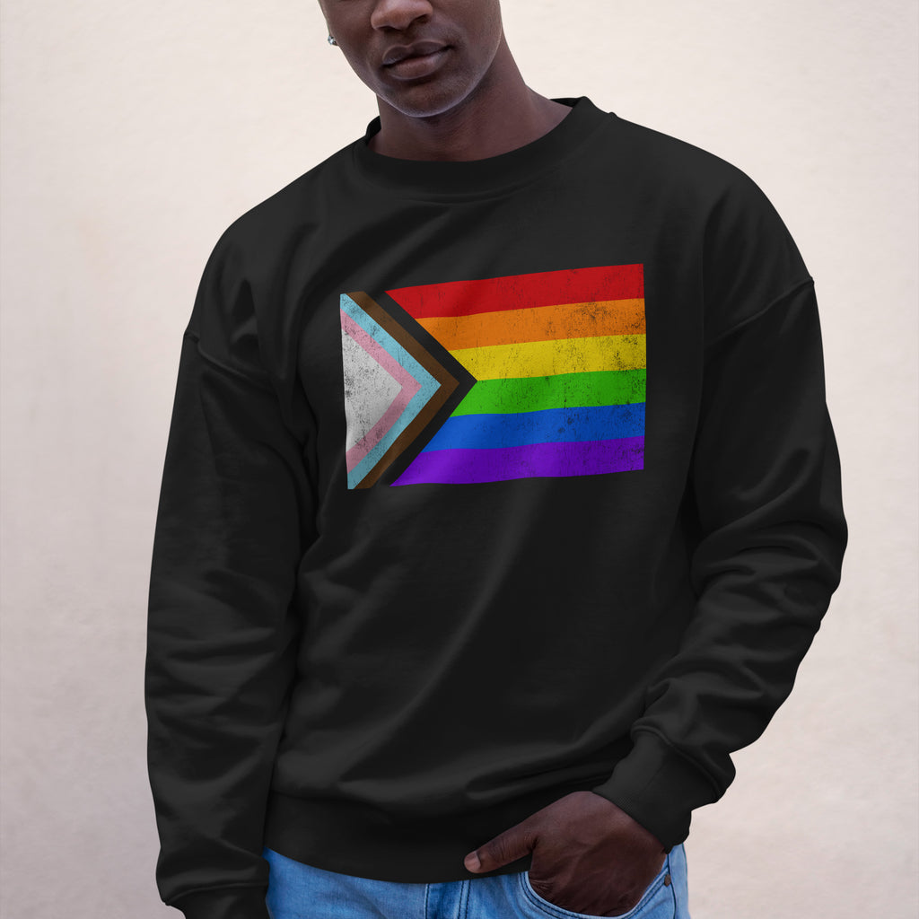 Slip din Progress Pride løs med vores Distressed Pride Flag Sweatshirt! Vis støtte til LGBT+-fællesskabet og kampen for lighed og accept. Køb nu!