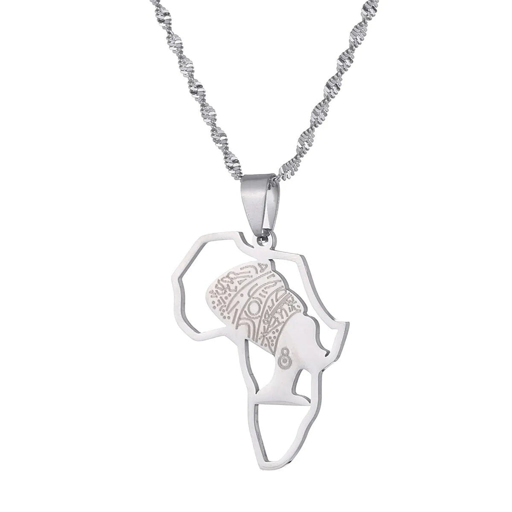 Fejr din arv med vores Queen Nefertiti & Africa Map Necklace. Vis din stolthed, støt dit land & bær dit vedhæng med passion. Køb nu!