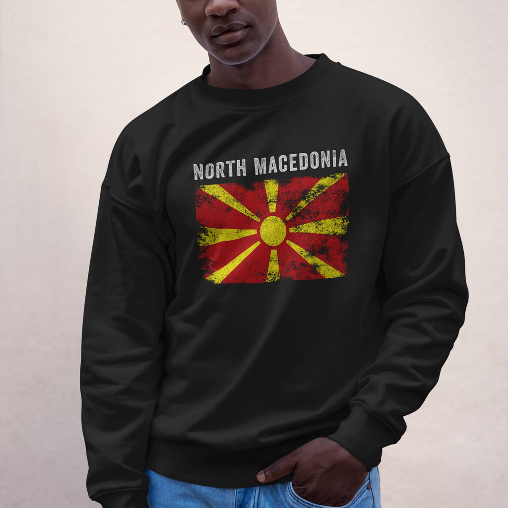 Fejr din arv med vores Distressed Republic of North Macedonia Flag Sweatshirt. Vis din stolthed, støt dit land & bær dine farver med passion. Køb nu!