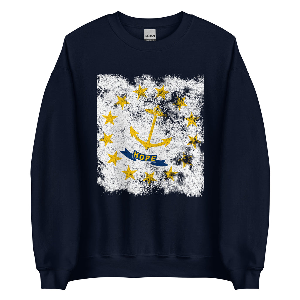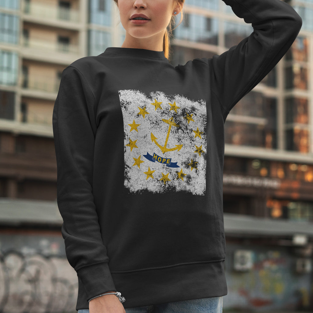 Fejr din arv med vores slidte Rhode Island State Flag Sweatshirt. Vis din stolthed, støt dit land og bær dine farver med passion. Køb nu!