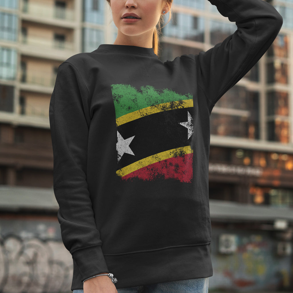 Fejr din arv med vores Distressed Saint Kitts and Nevis Flag Sweatshirt. Vis din stolthed, støt dit land & bær dine farver med passion. Køb nu!