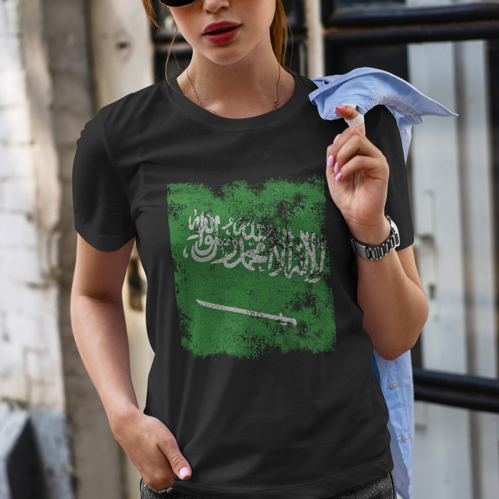 Fejr din arv med vores Distressed Saudi Arabia Flag Shirt. Vis din stolthed, støt dit land og bær dine farver med passion. Køb nu!