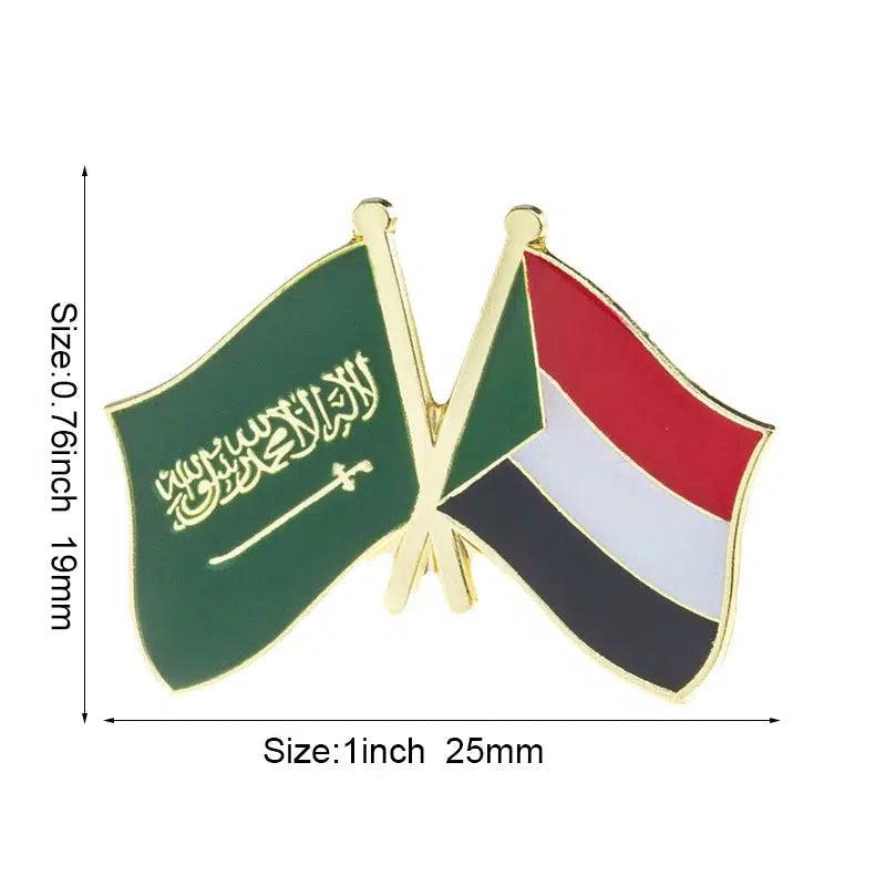Fejr dit venskab med vores Saudi Arabien Sudan Flag Reversnål. Vis din stolthed, støt dit land & bær din emaljenål med passion. Køb nu!