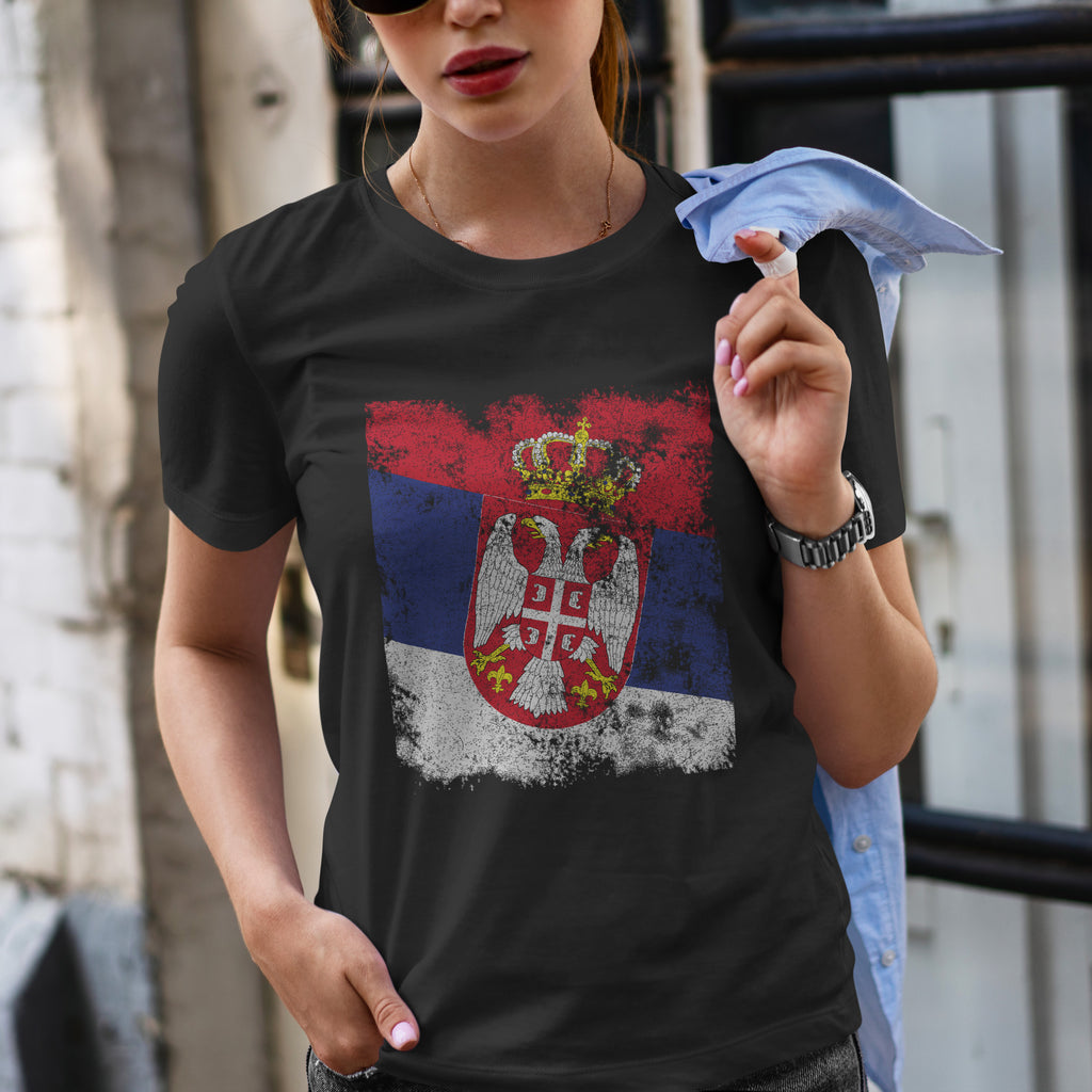 Fejr din arv med vores Distressed Serbia Flag Shirt. Vis din stolthed, støt dit land og bær dine farver med passion. Køb nu!
