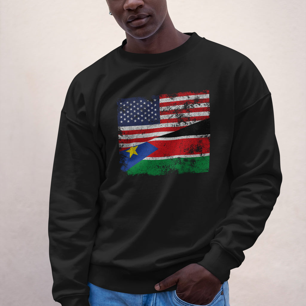 Fejr din arv med vores Distressed South Sudan 2011-2023 USA Flag Sweatshirt. Vis din stolthed, støt dit land & bær dine farver med passion. Køb nu!