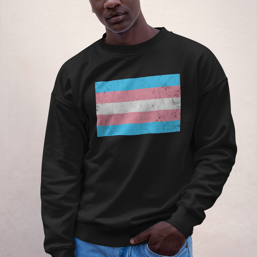 Slip din transgender-stolthed løs med vores Distressed Pride Flag Sweatshirt! Vis støtte til LGBT+-fællesskabet og kampen for lighed og accept. Køb nu!