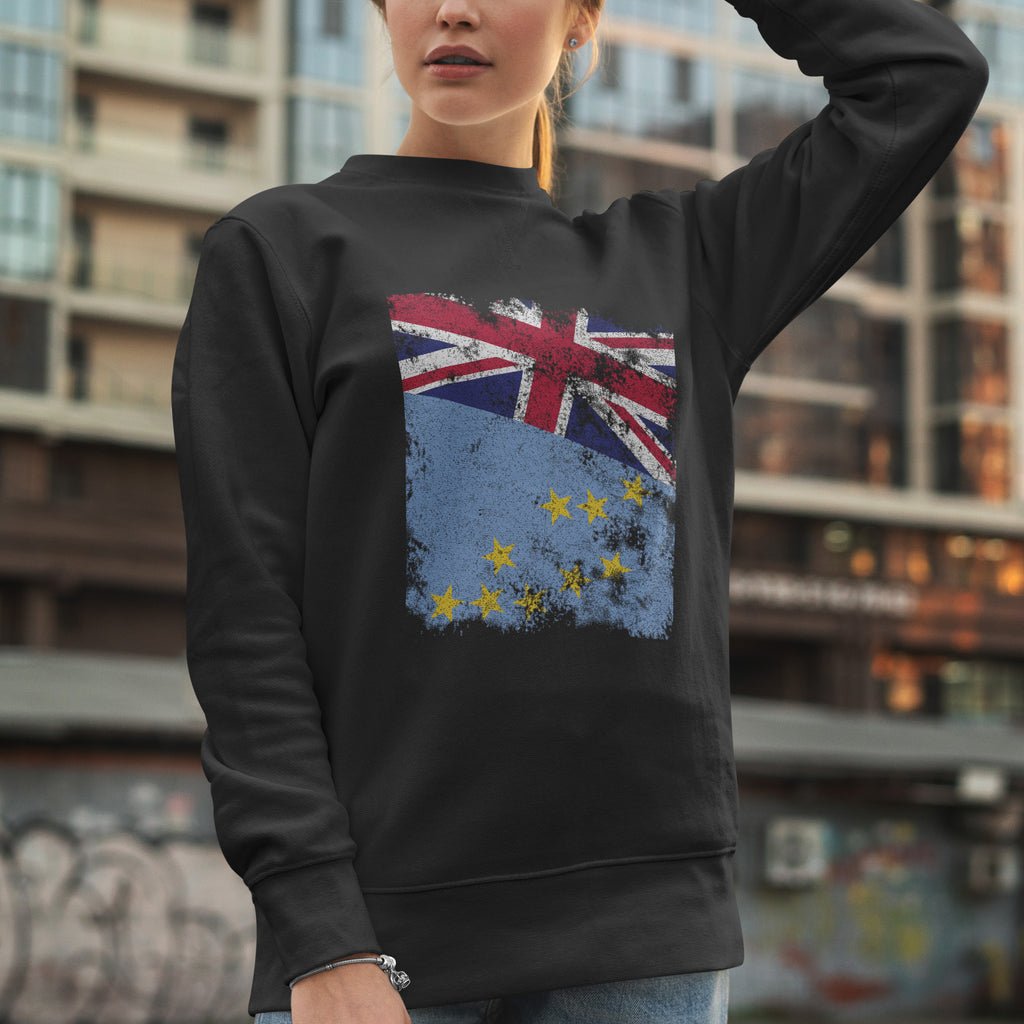 Fejr din arv med vores Distressed Tuvalu Flag Sweatshirt. Vis din stolthed, støt dit land & bær dine farver med passion. Køb nu!