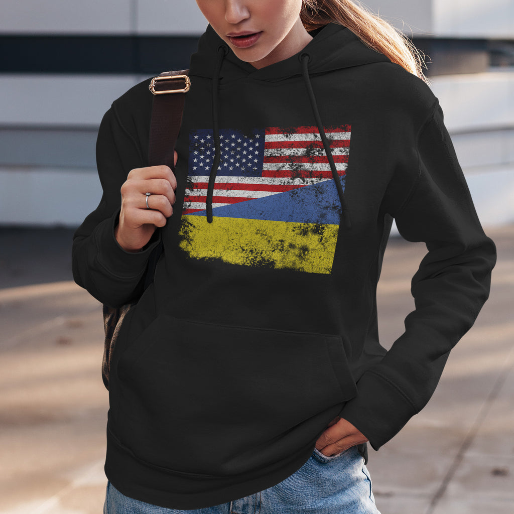 Fejr din arv med vores Distressed Ukraine USA Flag Hoodie. Vis din stolthed, støt dit land & bær dine farver med passion. Køb nu!