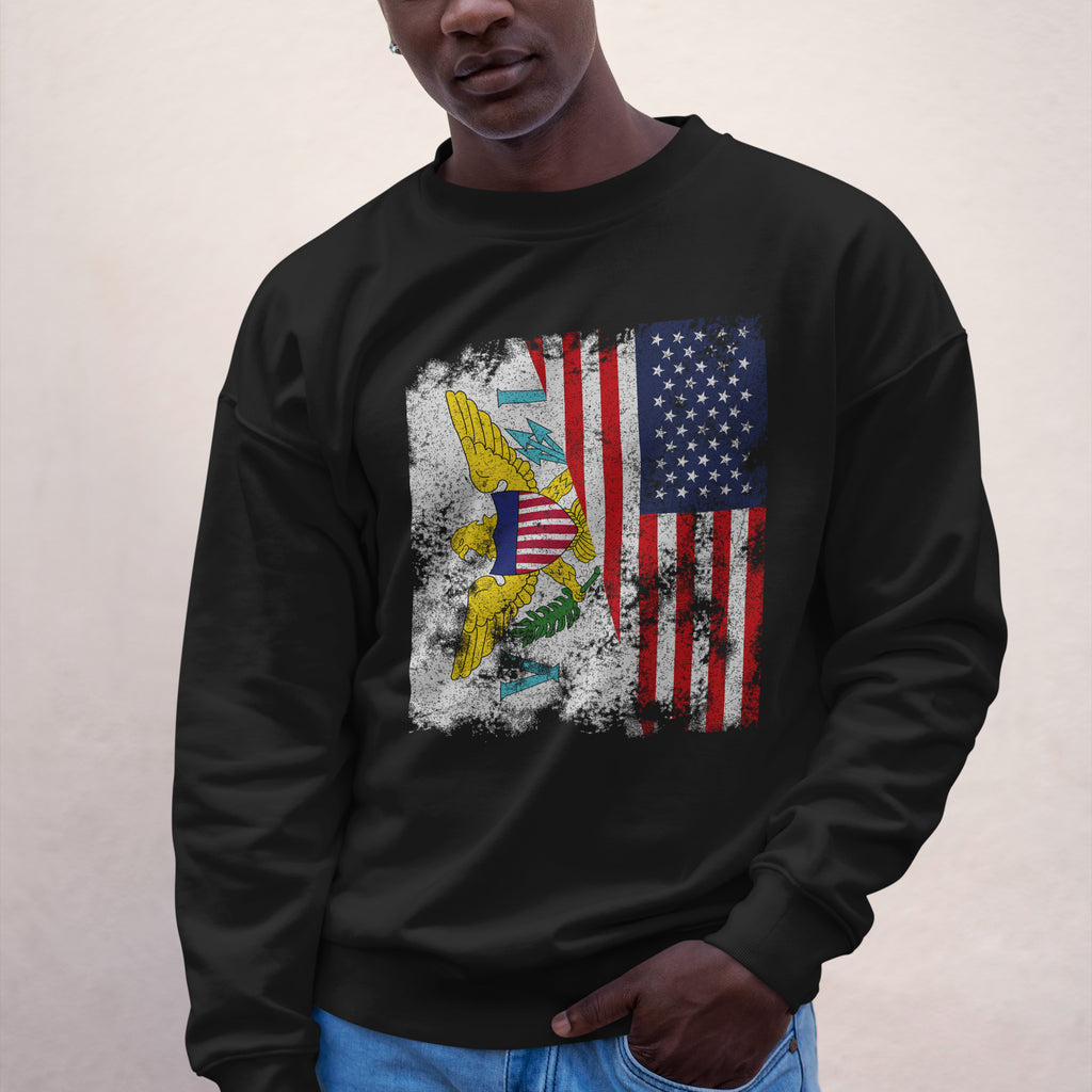 Fejr din arv med vores Distressed US Virgin Islands USA Flag Sweatshirt. Vis din stolthed, støt dit land & bær dine farver med passion. Køb nu!