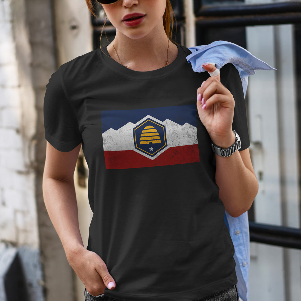 Fejr din arv med vores slidte Utah State Flag Shirt. Vis din stolthed, støt USA og bær dine farver med passion. Køb nu!
