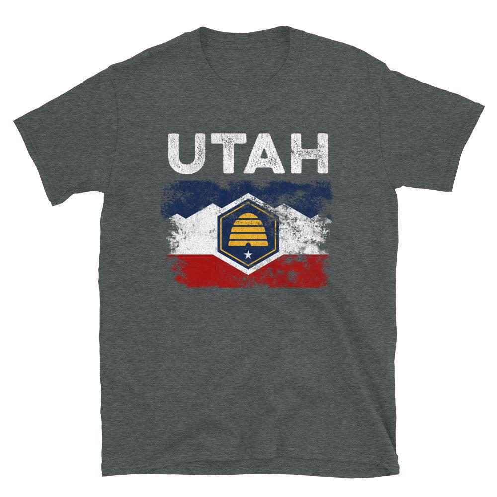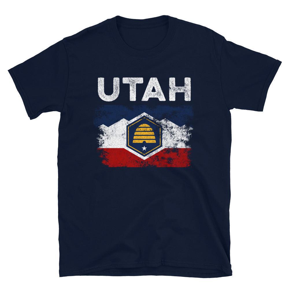 Fejr din arv med vores Distressed Utah State Flag Shirt. Vis din stolthed, støt USA og bær dine farver med passion. Køb nu!