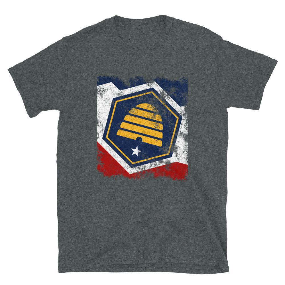 Fejr din arv med vores Distressed Utah State Flag Shirt. Vis din stolthed, støt USA og bær dine farver med passion. Køb nu!