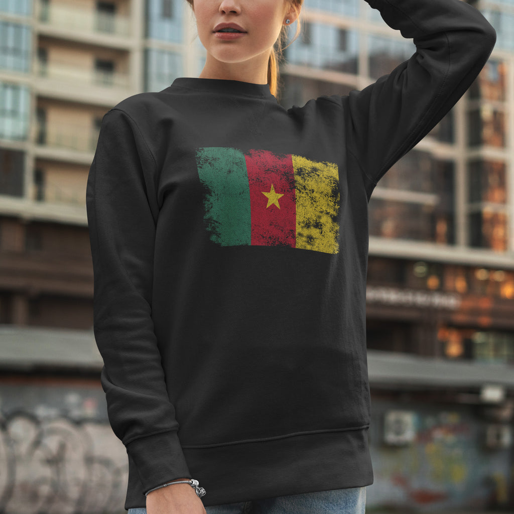 Feiern Sie Ihr Erbe mit unserem Sweatshirt mit abgenutzter Kamerun-Flagge. Zeigen Sie Ihren Stolz, unterstützen Sie Ihr Land und tragen Sie Ihre Farben mit Leidenschaft. Jetzt kaufen!
