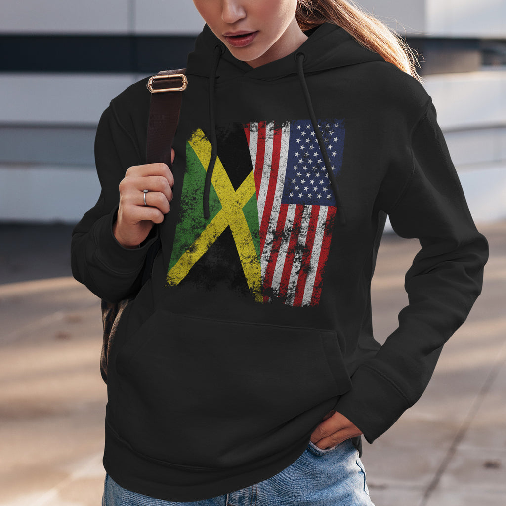 Feiern Sie Ihr Erbe mit unserem Hoodie mit distressed Jamaica USA Flagge. Zeigen Sie Ihren Stolz, unterstützen Sie Ihr Land & tragen Sie Ihre Farben mit Leidenschaft. Jetzt kaufen!