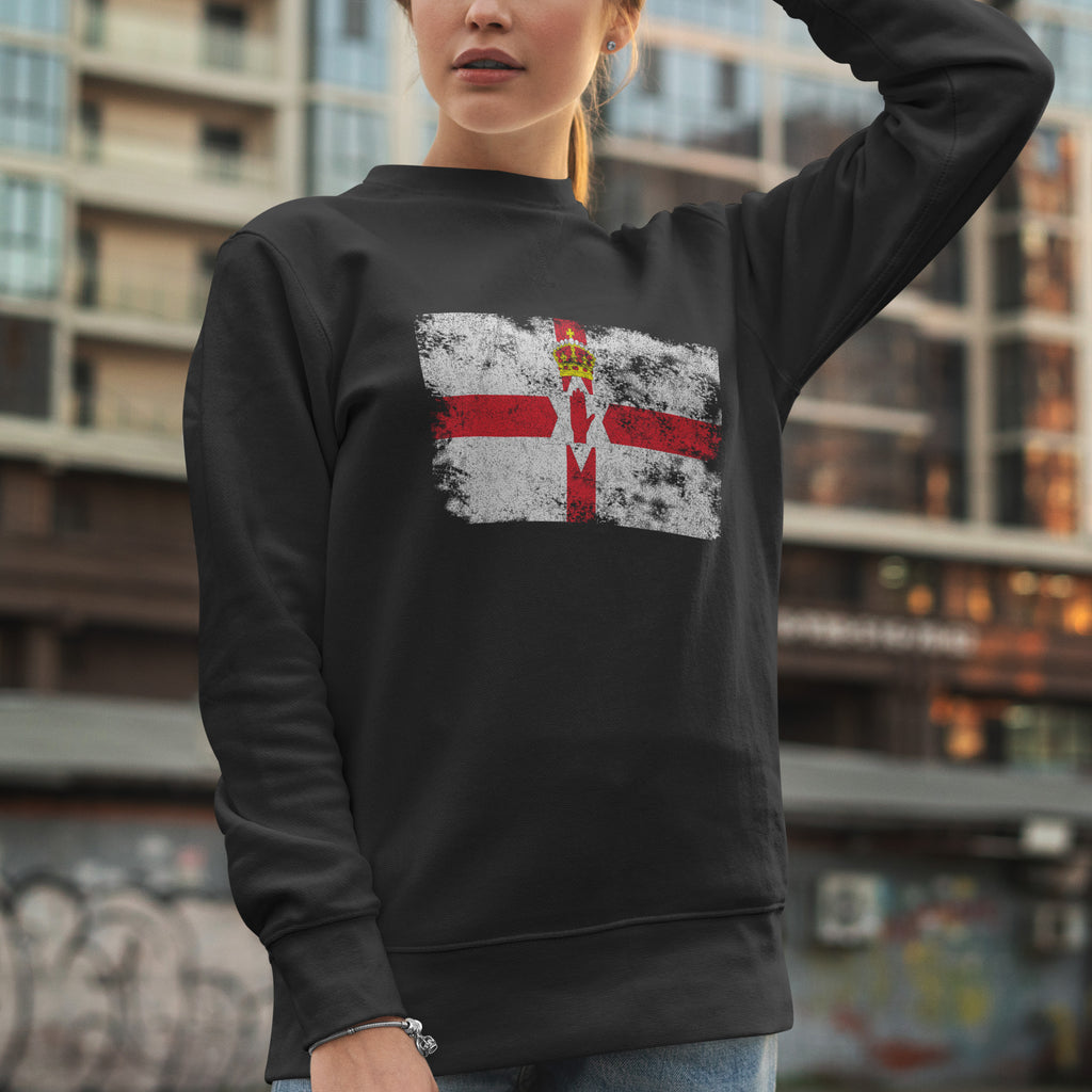Feiern Sie Ihr Erbe mit unserem Sweatshirt mit der abgenutzten Flagge Nordirlands. Zeigen Sie Ihren Stolz, unterstützen Sie Ihr Land & tragen Sie Ihre Farben mit Leidenschaft. Jetzt kaufen!