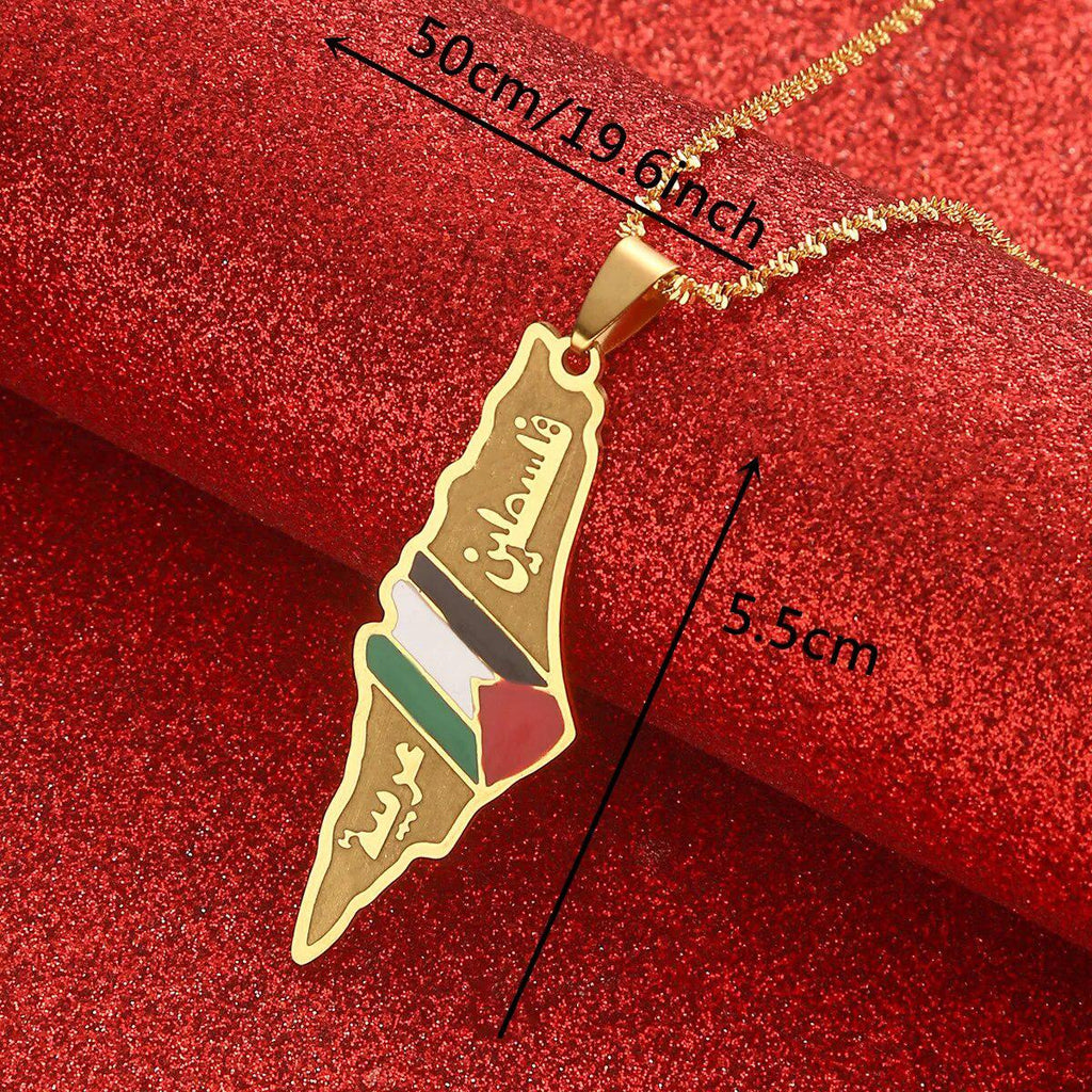Feiern Sie Ihr Erbe mit unserer Halskette mit Palästina-Flaggenkarte. Zeigen Sie Ihren Stolz, unterstützen Sie Ihr Land und tragen Sie Ihren Anhänger mit Leidenschaft. Jetzt kaufen!