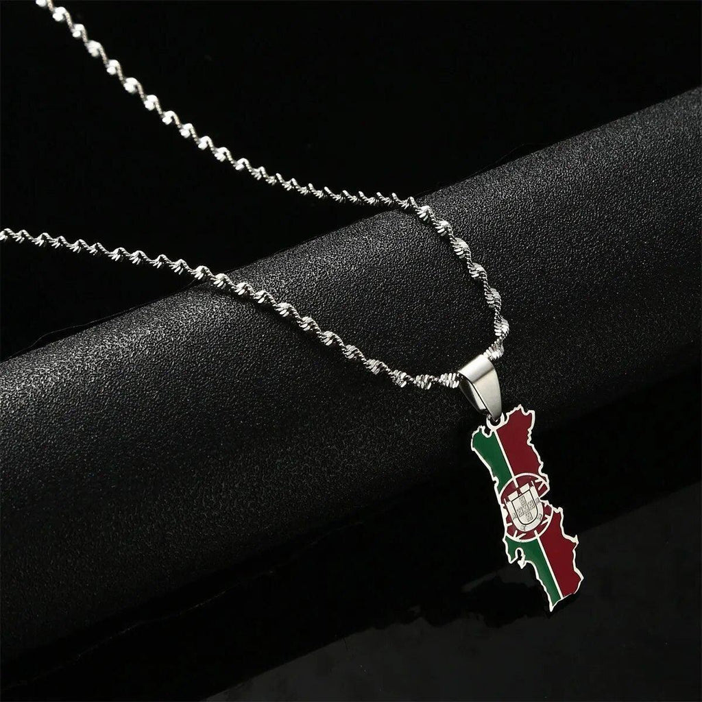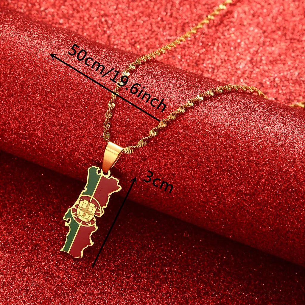 Feiern Sie Ihr Erbe mit unserer Halskette mit Portugal-Flaggenkarte. Zeigen Sie Ihren Stolz, unterstützen Sie Ihr Land und tragen Sie Ihren Anhänger mit Leidenschaft. Jetzt kaufen!